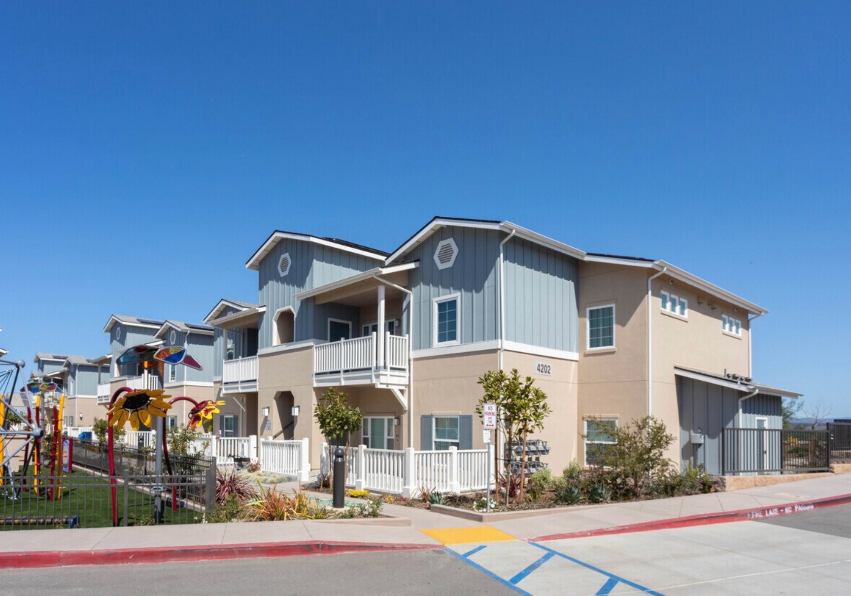 An affordable housing project for farm workers set in the small town of Guadalupe, CA. This site offers 38 units ranging from 1 - 3 bedrooms and uncovered parking. The project achieved LEED Platinum standards, a new benchmark for our client. The original style of the project was going to be a "Bermuda" style, but after working with some budgetary and location concerns with the client, we settled on a classic farmhouse style instead. There is an attached community center with development programs to help this small apartment community. Location: Guadalupe, CA Unit Mix: 1, 2, and 3 Bedrooms Style: Bermuda changed to Farmhouse LEED Rating: Platinum
